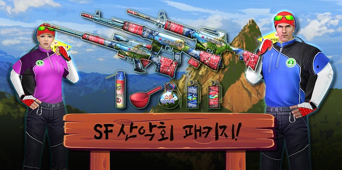 ... 무기 시리즈는 봄 시즌 초록빛의 산의 정취와 등산에 사용하는 페이즐리 패턴의 손수건의 일부를 디자인 한 총기 5종, 수류탄 3종, 벌레퇴치 에어졸 1종, 약수터 바가지 2종으로 총 11종이다. 장비 시리즈는 산악회 회원의 모습을 장식할 수 있는 SF 산악회 모자, 의상, 랜턴,