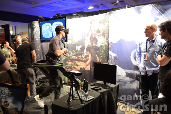 ... 헤드마운트는 상하좌우 각도를 인식하도록 설계됐다. 멀리 있는 목표물을 잡기 위해서 이용자는 실제로 걷거나 뛰어야 하며 총도 직접 조준하고 방아쇠를 당겨야 한다. 관람객들은 '옴니' 본체 등 장비 가격에 대해 자세히 질문하고 호환가능한 게임 종류를 묻는 등 적극적으로 관