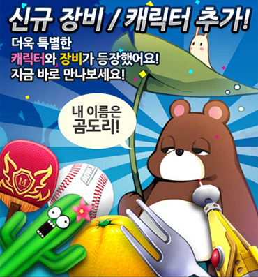... 곰도리는 높은 점수가중치를 제공하는 것은 물론 5초간 점수 100% 추가, 피버획득량 증가, 피버시간 추가 등 다양한 스킬이 장착돼 있다. 또한 6종의 장비가 각 종목마다 새롭게 추가된다. 신규 장비들은 개성 있는 외형 뿐 아니라 다양한 효과 연출로 게임의 재미를 더 해준다