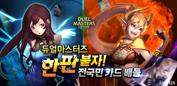 ... 또한 친구 카드 대여, 친구와 1대1 대결, 친구 랭킹 및 전체 랭킹 표시 등 SNS 요소를 강화해 게임의 재미를 더하고 있다. 김민석 라이브플렉스 게임사업부 이사는 “듀얼마스터즈가 라이브플렉스 대표 TCG로 성장할 수 있도록 서비스 준비에 만전을 기하고 있다"며 "게임에서