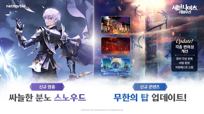 ... 또한 공격시 물 속성 피해를 증가시키고 자신이 받는 피해는 감소하는 것이 특징이다. 이와 함께 신규 콘텐츠 ‘무한의 탑’을 공개했다. 총 5명의 영웅을 배치해 전투를 진행하는 콘텐츠로 배치한 영웅의 속성 및 직업군에 따라 시너지 효과가 적용되며 자동