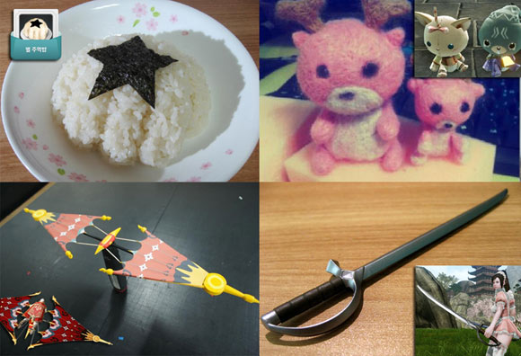 ... 최근 ‘힐링 캠페인’ 이벤트를 통해 모인 원정대의 모임 현장에서도 ‘별 주먹밥’이 등장해 화제가 됐었다고 엑스엘게임즈 한 관계자는 전했다. 게임에 등장하는 동물을 본떠 먹거리로 제작한 유저도 있다. 에아나드 서버의 포카치아 유저는 병아리 모양의 만쥬(Manju, 팥