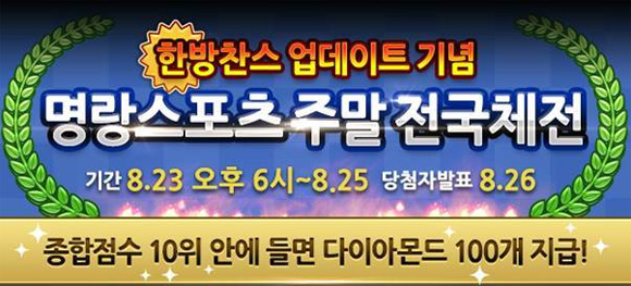 ... 전체 종합점수 1-10위까지 다이아몬드 100개를 제공하고 점수 구간별 추첨을 통해 추가 다이아몬드를 지급할 예정이다. 피닉스게임즈 관계자는 "인기에 힘입어 첫 번째 컨텐츠 업데이트를 진행하게 됐다. 앞으로도 유저들이 즐길 수 있는 새로운 인게임 컨텐츠를 지속적으로 준비해