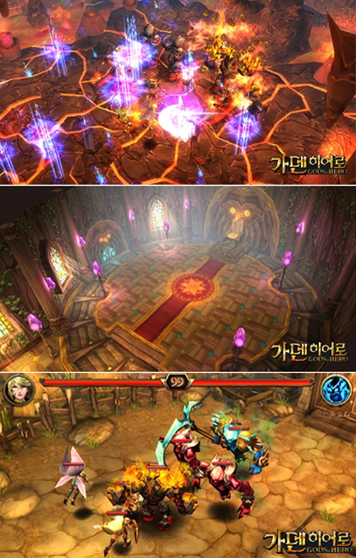 ... 또한 쿼터뷰로 표현한 궁전 등의 배경 이미지를 통해 북유럽 신화의 모습을 만나볼 수 있다. 특히 가덴히어로는 MMORPG와 대등한 수준의 방대한 퀘스트와 콘텐츠, 게임 회원간 실시간 대전 및 협력 플레이 등이 가능하며 쉽고 편하게 즐길 수 있는 웹게임에 RPG의 특성이 더해진