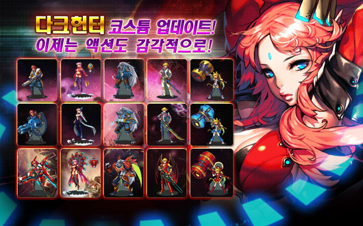 ... ‘다크헌터’에서 이번에 선보인 ‘코스튬 업데이트’는 각각의 캐릭터 의상과 장신구를 화려하게 변경할 수 있는것으로 속성 강화 효과도 갖고 있다. 코스튬은 시간 제한 없이 영구적으로 사용할 수 있으며 VIP 2에서 적용 가능한 1단계 코스튬과 VIP6에서 착용 가능한 2단계 코