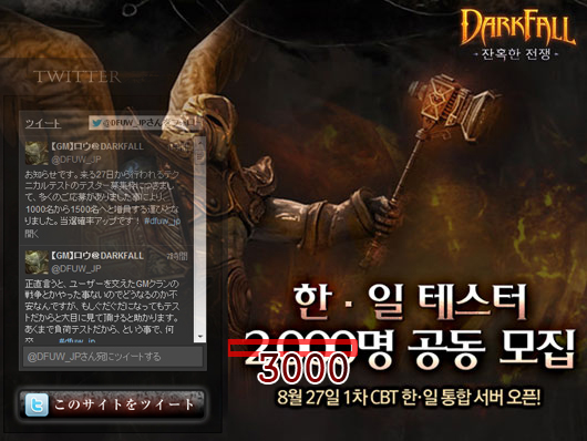 ... 일본 유명 웹진 포게이머넷에서 신작 기대 MMORPG 2위에 오른데 이어 이번 1차 CBT에 일찌감치 신청자 1천명을 돌파하며 한국과 동일하게 테스터를 1500명으로 늘렸다. 이용자 간 전투(PVP)에 특화된 MMORPG(다중접속역할수행게임) '다크폴:잔혹한전쟁'은 그리스