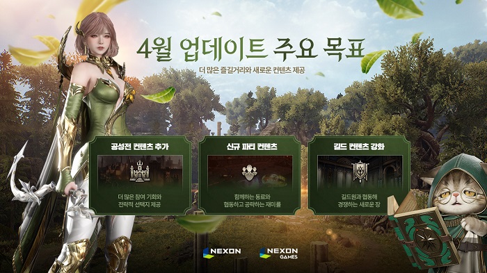 ... 파티원들이 힘을 모아 몰려드는 몬스터를 처치하면 특별한 보상을 제공하는 파티 던전 ‘유폐의 회당’, 길드별로 포인트를 모아 순위를 가리는 길드 콘텐츠 ‘결속의 증명’을 도입한다. 이와 함께 게임 내 공성 참가 길드의 용병으로 가입