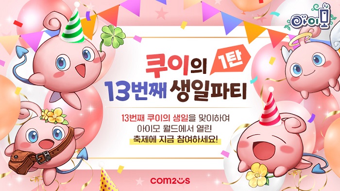 ... 2010년에 스마트폰 버전이 출시됐으며, 이후 13년째 서비스를 이어가며 전 세계 게임 팬들로부터 사랑받고 있는 컴투스의 장수 게임이다. 이번 13주년 기념 1탄 이벤트는 ‘아이모’의 대표 몬스터인 '쿠이의 생일 파티'라는 이름으로 오는