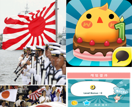 ... 또 게임을 끝내고 점수를 나타내는 화면에서도 유사한 디자인이 등장한다. 이로 인해 욱일승천기의 붉은색과 흰색이 아닌 파란색과 하늘색을 사용했지만 디자인 자체가 유사하다는 지적을 받고 있는 것. 욱일승천기는 태양을 상징하는 빨간 원인 ‘히노마루’를 중심으로 주변에 16개의 햇살