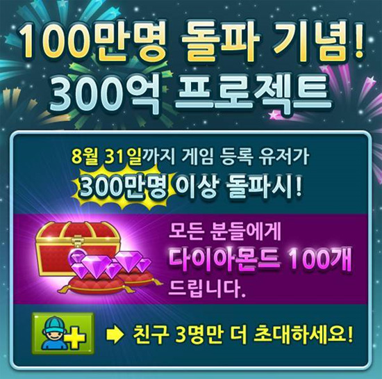 ... 피닉스게임즈는 오는 31일까지 이용자당 3명의 친구를 추가로 초대해 300만 회원을 돌파할 경우 다이아몬드 100개를 지급하는 기념이벤트를 진행할 예정이다. [최지웅 기자 csage82@chosun. com] [gamechosun