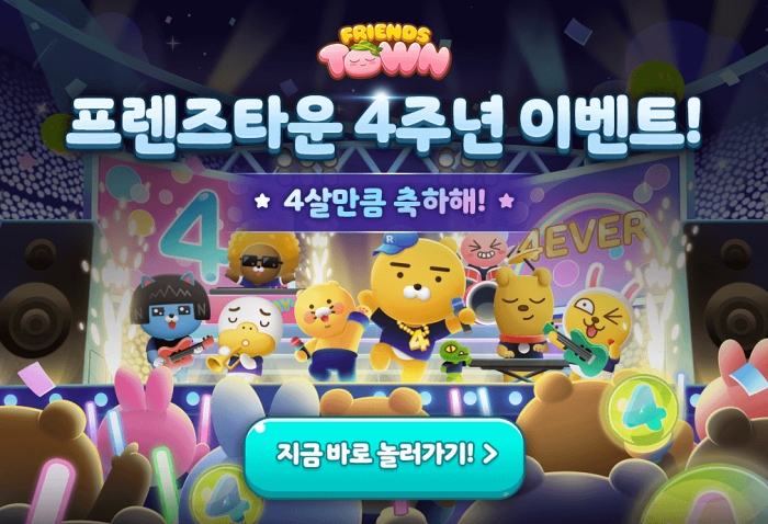... 이와 함께, 이벤트 기간 내 게임에 접속한 이용자 전원에게 다수의 ‘시간제 하트’를 증정하고, 3일 동안 출석 시 ‘4주년 한정 프로필 사진’, ‘라이언 확정 획득 티켓’ 및 ‘어피치 확정 획득 티켓