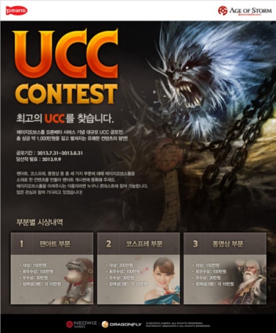 ... 각 부분별로 심사가 이루어지는 이번 이벤트의 대상에게는 최대 200만원의 상금(▶팬아트 부문 150만원 ▶코스프레 부문 200만원 ▶동영상 부문 150만원)이 수여되며, 최우수상과 우수상에게는 각각 100만원과 30만원이, 장려상에게는 10만원이 지급된다. 당선작은 9월 9