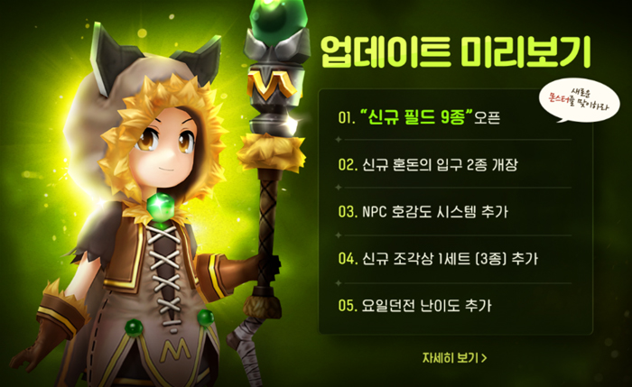 ... 이벤트 던전 '음유시인의 초대'추가와함께 상점 일일 판매 상품 중 '탈것 소환'과 '소환수 부화'의 구매 횟수가 증가해 빠른 사냥과 레벨업을 위한 필수 요소인 동료와 탈것,소환수를 더 자주 얻을 수 있게 된다. 음유시인의 초대는