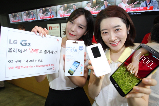 ... LG전자는 이를 기념해 9일 오전 서울 난지공원에서G2 무료교환권을 제공하는 ‘하늘에서 G2가 내린다면’을 주제로 한 행사를 마련했다. G2 제품 교환권을 매단 풍선 100개를 하늘로 띄워 올린 뒤 기압차를 이용해 터뜨려 교환권을 무료로 배포하는 것으로 최신형 스마트폰을 무