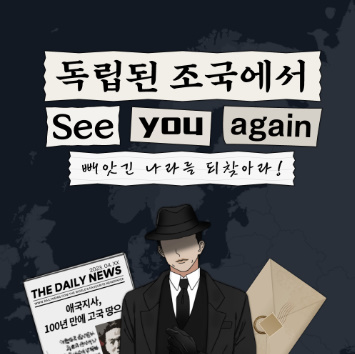 ... 이번 콘텐츠는‘국가와 국민의 영웅을 기억하는 보훈문화 조성’의 일환으로 순국 100년 만에 유해가 봉환되는 황기환 지사의 독립운동 업적을 국민이 함께 기억하고 되새기기 위해 기획됐다. '독립된 조국에서 다시 봅시다(See You Again