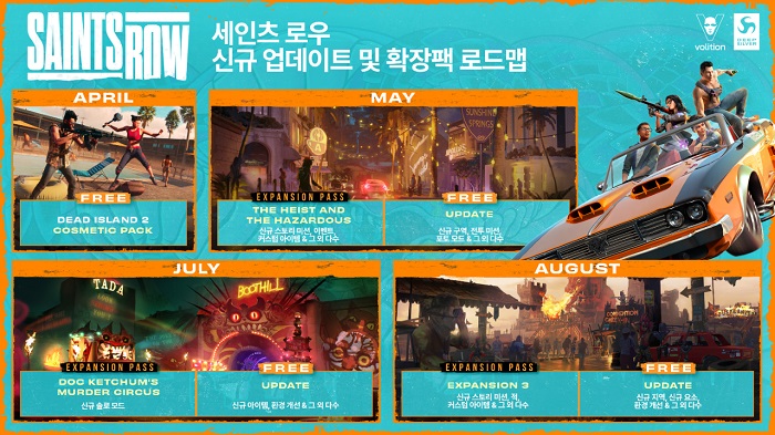 ... 4월 21일 플레이온의 딥 실버에서 출시하는 ‘데드 아일랜드 2’ 속의 주인공 커스텀 아이템과 무기, 좀비 댄스, 베니스 해변 상어 조각상 등의 추가 컨텐츠가 무료로 4월 11일 업데이트된다. 이후 5월에는 세인츠 로우의 메인 지역인 산토 일레소