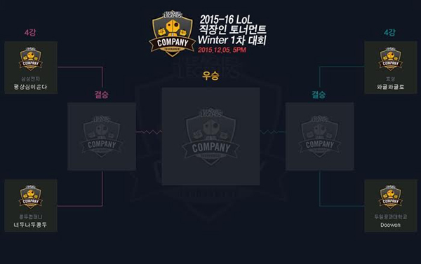 ...치열한 예선을 통해 최종 4강 진출팀에는 삼성전자(평상심이쏜다), 효성(와글와글로), 두원공과대학교(Doowon), 콩두컴퍼니(너두나두콩두)가 이름을 올렸다. 삼성전자의 경우 팀원 중 3명이 지난 직장인 토너먼트에서 우승한 이력을 가지고 있어 이번 대회의 강력한 우승후보로 꼽힌다
