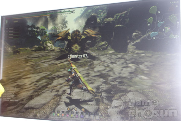 ... 또한 거대 몬스터들의 움직임이 매끄러워 사냥의 손맛을 제대로 느낄 수 있었다. 대검을 든 시연 캐릭터는 몬스터에 강한 데미지를 줄 수 있었으나 다소 느린 공격 속도 탓에 보다 세밀한 컨트롤을 요했다. 또한 몬스터의 공격을 피해 땅을 구르거나 불붙은 상황에서 물 속에 뛰어