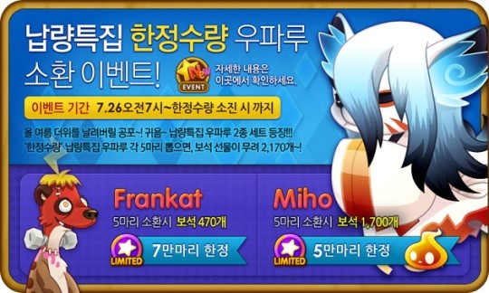 ... 미호 및 프랑캣 소환에 성공한 이용자들에게는 소환 갯수마다 정해진 마나볼과 보석이 소환시마다 자동으로 지급된다. NHN 한게임 관계자는 "'우파루 마운틴 for Kakao'는 기존 SNG와 달리 캐릭터 콜렉션에 초점을 맞춘 게임으로 동물을 비롯해 로보트와 돌, 인기 초콜릿스