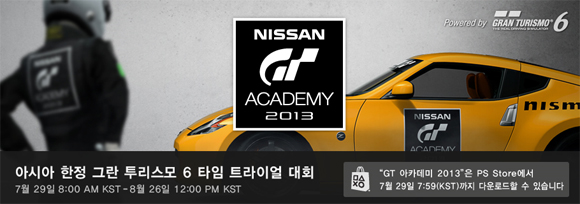 ... 참여를 원하는 유저들은 7월 29일 오전 7시 59분 이전에 플레이스테이션 스토어에서 GT 아카데미 2013을 다운로드 해 튜토리얼과 각 이벤트를 완료한 후 'GT 아카데미 2013 보너스 이벤트: 파이널 트라이얼'을 플레이하면 된다. 그란투리스모6 타임 트라이얼 대회 방식