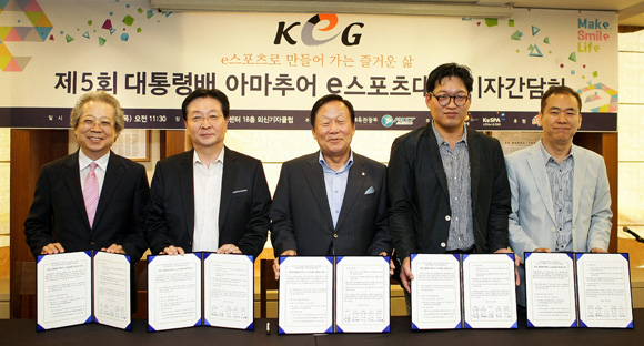 ... 이날 간담회에서는 한국콘텐츠진흥원, 천안시, 한국e스포츠협회, 전남과학대학교, 청강문화산업대학교가 참여하는 2013 대통령배 KeG 심판 지원을 위한 업무협약(MOU) 체결식도 함께 열렸다. 업무협약은 업무협약 참가 학교에서 선발된 e스포츠 심판 후보 인력들에 대한 역량교육과