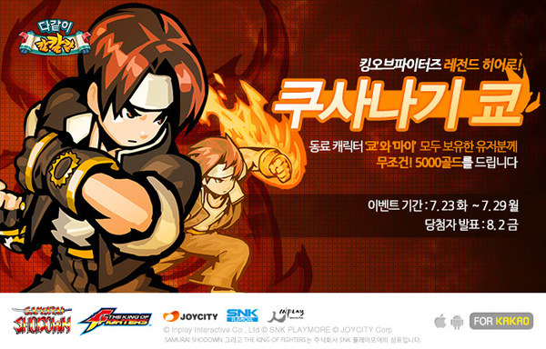 ... 조이시티는 이번 업데이트를기념해 오는 29일까지 동료 캐릭터 ‘쿠사나기 쿄’와 ‘시라누이 마이’를 모두 보유한 유저 전원에게 5000 골드를 선물로 증정한다. 또 내달 12일까지 ‘학교 대항전’에 친구를 추천한 유저에게 최대 3,500 골드와 200 루비, 문화상품권을 경품