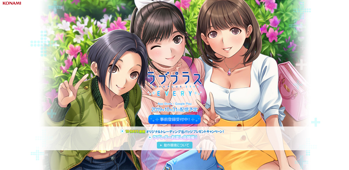 ... 코나미는 당초 2017년 겨울 출시를 목표로 러브플러스에브리를 개발하고 있었지만, 곧 출시일을연기했으며, 2018년에는 8월 출시를발표하는 동시에 사전등록을 진행했으나 결국 다시 한번 출시일을연기해 팬들의 우려를 샀다. 결국, 계획됐던 출시일보다 2년 늦은 2019년10월