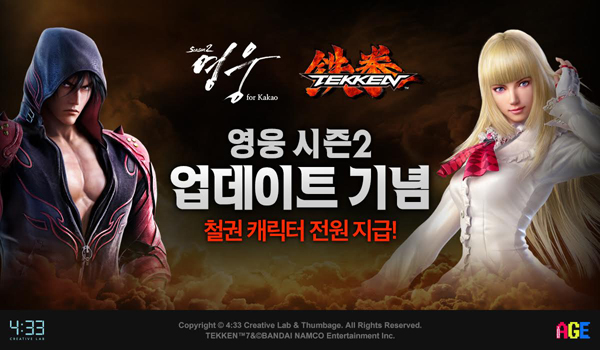 ...민진홍 4:33 사업 2실 실장은 “오락실의 영웅 ‘철권’과 실존 영웅을 모바일 게임으로 구현한 ‘영웅’이 만나며 강력한 시너지 효과를 낼 것으로 기대된다. ”라며 “유저들을 위한 다양한 이벤트도 함께 진행할 예정이니, 많은 관심 부탁드린다. ”고 전했다