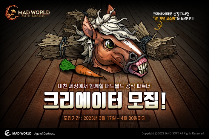 ... 파트너 프로그램에 선정된 크리에이터는 주 1회 ‘매드월드’ 콘텐츠를 업로드 하거나 주 2시간 이상 라이브 스트리밍을 진행해야 한다. 이들에게는 파트너 전용 코스튬과 칭호를 제공할 예정이며, 파트너 전용 굿즈 기프트가 제공될 예정이다. &lsqu