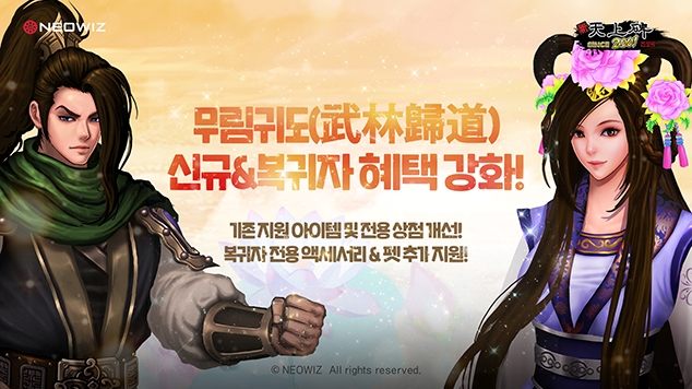 ... 천상비 사이트 내 무림귀도 페이지에 접속 후 이용자의 서버와 캐릭터를 선택하면 지급이 된다. 기존 ‘투혼의 바람’, ‘단축부’, ‘용사의 증표’ 등 아이템 5종 외에 ‘복귀자 전용 구슬, 수호령(펫)&r
