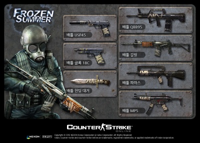 ... 이벤트 기간 동안 유저들은 킬(Kill, 상대를 아웃 시킨 횟수) 포인트를 달성해 얻은 알파벳과 숫자를 모아 무기 이름의 일부 단어(‘GLOCK’, ‘USP45’, ‘MP5’, ‘FAMAS’, ‘GALIL’, ‘QBB95’, ‘DAGGER’)를 조합하면 해당 무기를 획득할 수