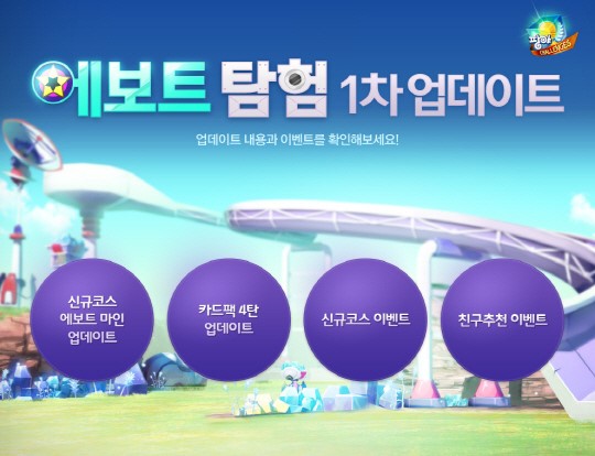 ... 1년 만에 공개되는 새로운 골프 코스 '에보트 마인'은 특이한 광물이 있는 거대한 광산이 콘셉트로, '슬라이드', '광물 기둥' 등 지형지물을 이용해 코스를 공략하는 것이 특징이다. 특히, 3개의 거대한 광물 기둥을 이용하면 홀인원(Hole in one)까지 노려볼 수 있다.