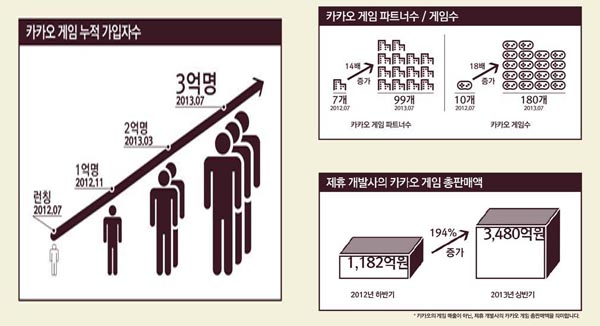... 올 상반기 게임총 판매액은 3480억원으로 지난해 하반기 1182억에 비해 194% 증가했다. 특히 카카오게임 누적 매출 상위 10위권 내 6개 게임이 중소개발사 게임으로 이들 게임이 차지하는 비중은 58%에 달한다. 또한 1000만 다운로드를 달성한 게임은 8개로 이 가운데