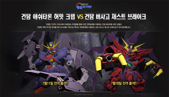 ... 넷마블은 신규 유닛 2종도 함께 선보인다. 먼저 ‘건담 애쉬타론 허밋 크랩’은 ‘건담 애쉬타론’을 대폭 개량한 기체로서 모빌 슈츠에서 모빌 아머로 가변이 가능하며 빔과 실탄 무장의 조합을 통한 뛰어난 사격전과 강력한 전투 능력이 특징이다. 또 다른 신규 유닛 '프리덤 건담
