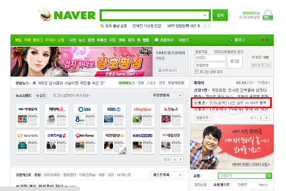 ... 그간 프로야구 중계만 메인 페이지에 링크가 제공됐으나, 다시 재개되는 롤챔스 중계는 파격적으로 네이버 메인에 프로야구와 함께 노출됐다는 점이다. 한편 한국e스포츠협회장은 10일 자신의 트위터에 “롤챔스 섬머 시즌 10일부터 네이버를 통해서 송출된다”며 “협회와 라이엇, 온게임