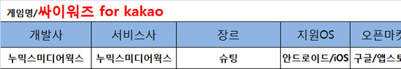 ...co. kr) 등에 기초하고 있습니다. <편집자주> 누믹스미디어웍스가 YG엔터테인먼트와 콘텐츠 제휴를 맺고 '싸이워즈 For kakao'를 출시했다