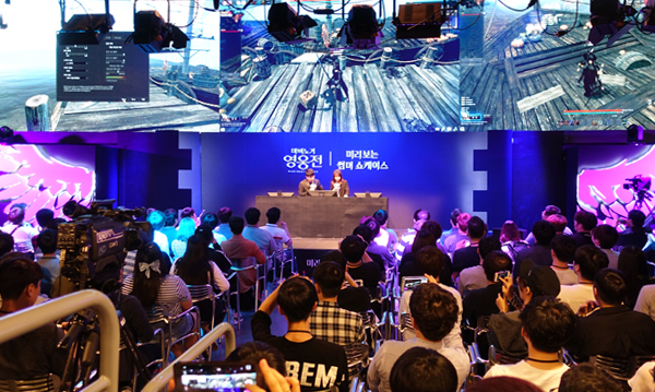 ...스토리, 전투, 편의성, 아이템 등 폭넓은 부문에 걸친 대대적인 개편은 물론, 유저들이 기다리던 신규 캐릭터, 2차 무기 소식 등 즐길거리를 담고 있다. ▲ 콘텐츠 소개 영상을 마치고 무대에 오른 오동석 디렉터(오른쪽). 우선 6월에는 스토리, 아이템, 시스템, 그래픽 등 전반적인