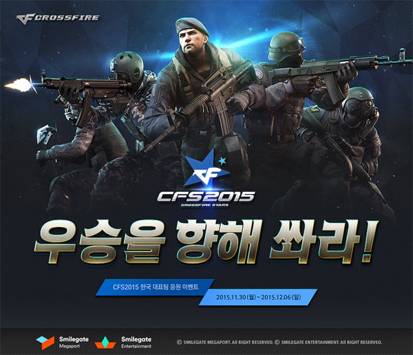... 참가한 유저들 중 추첨을 통해 총 150명에게 문화상품권, 캐시 아이템 등 선물을 증정한다. ‘꿈은 이루어진다!’ 이벤트는 CFS 2015 GF에서의 ‘히든’팀의 성적을 투표하면 된다. 최종 성적을 맞힌 유저 전원에게 영구제 레어총기인 ‘M200 체이탁 할로윈 버전’을 지급