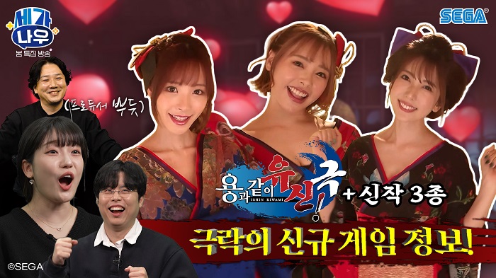 ... ‘세가 나우(봄 특집 방송)’은 세가의 새로운 정보 및 신작 게임의 체험 플레이를 선보이는 게임 정보 방송이다. YouTube를 중심으로 활동하는 옥냥이, 연두부 님이 MC로 방송을 진행하고, 게스트로는 ‘용과 같이’시리즈의 사카