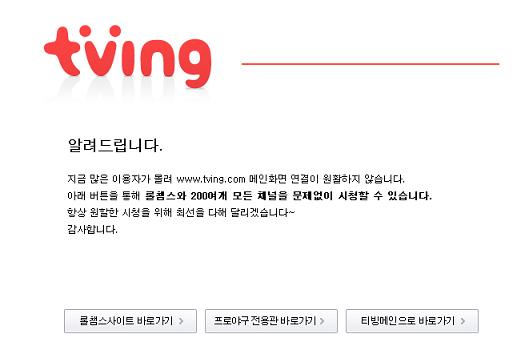 ... 이같은 인기 탓에 티빙 홈페이지는 메인 화면 연결이 원활하지 않다며 롤챔스 바로가기 메뉴를 따로 마련했다. 해당 메뉴를 클릭할 경우 LOL 챔스 경기를 볼 수는 있으나 워낙 많은 사람이 접속한 탓에 경기 화면까지 가는데 많은 시간이 걸렸다. LOL 챔스 결승전의 인기가 날