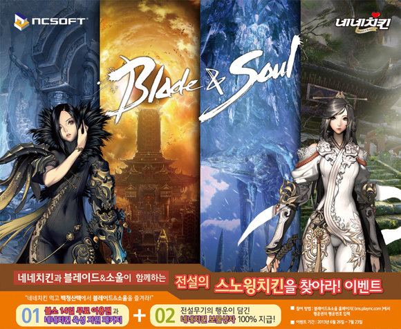 ... 먼저 양 회사는 '블소' 백청산맥 업데이트에 앞서 12일부터 공동 광고를 실시하고 오는 26일부터 내달 23일까지 4주간 '전설의 스노윙치킨을 찾아라' 이벤트를 진행한다. 또 6월 26일부터 전국 네네치킨 매장에서 치킨을 주문하면 ‘블소 행운권’을 증정한다. 행운권의 번