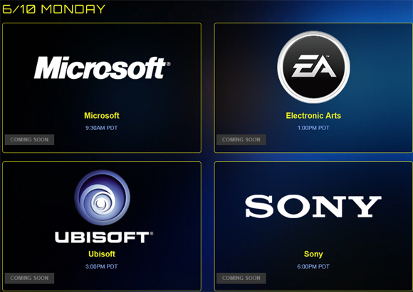 ... 콘솔 업계의 큰 손인 마이크로소프트(MS)와 소니컴퓨터엔터테인먼트는 이번 E3에서 차세대 콘솔기기인 'X박스 원'과 '플레이스테이션4(PS4)'의 세부 정보를 각각 공개한다. 일렉트로닉아츠(EA)와 액티비전블리자드 등 유명 게임사들도 다양한 신작 타이틀을 출품하며 게이머들의