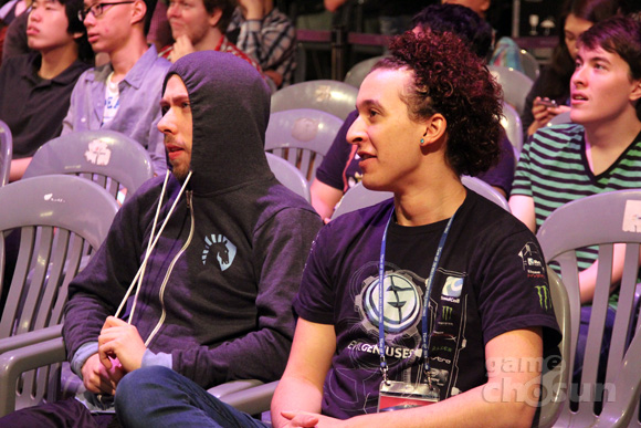 ... ▲ 다리오 뷘쉬와 일리예스 사토우리(좌부터) 일리예스 사토우리와 다리오 뷘쉬가 7일 용산 상설경기장에서 펼쳐지는 ‘2013 WCS 시즌1 파이날’ 16강 2경기를 앞두고 나란히 앉아 대화를 나눴다. A조에 함께 속한 일리예스 사토우리(이블지니어스)와 다리오 뷘쉬(리