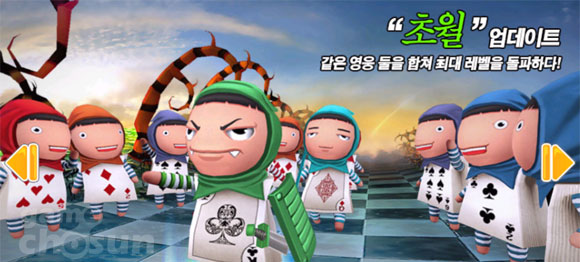 ... 먼저 '헬로히어로' 지역 중 이상한 가시고원 지역에서 4성 등급 영웅 탈리사가 드롭된다. '헬로히어로' 일반 미션에서 4성 등급이 드롭되는 것은 이번이 처음이다. 또 장교 킹과 대장 에이스를 비롯한 카드 병정 영웅 12종의 드롭 확률이 올라간다
