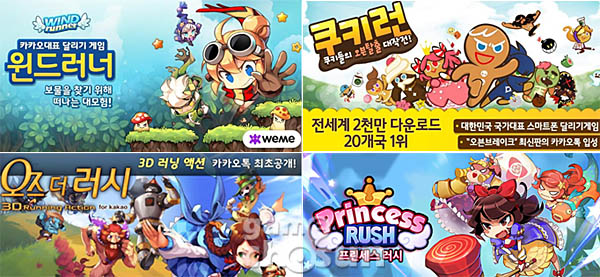 ...최근 2주간 카톡에 론칭된 게임들 가운데 4종이 달리기게임이다. 지난 22일에는 제니퍼 로페즈의 노래를 배경으로 하는 ‘팔로우리더’와 오즈의 마법사 주인공인 도로시를 내세운 ‘오즈더러시’가 출시됐고 28일에는 공주가 바람난 왕자를 잡아 나선 ‘프린세스러시’와 개가 도둑을 잡는 내용