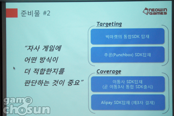 ... 김 대표가 중국 시장 공략을 위한 방안으로 꼽은 세 가지는 바로 빠른 '속도'와 타겟층에 따른 '결제 방식' 선택 그리고 '협업'이다. 먼저 김두일 대표는 "현재 중국 모바일게임 시장은거대해진 몸집에비해 양질의 콘텐츠는 부족한 상황"이라며 "잘하는 것도 중요하지만 지금은 빨