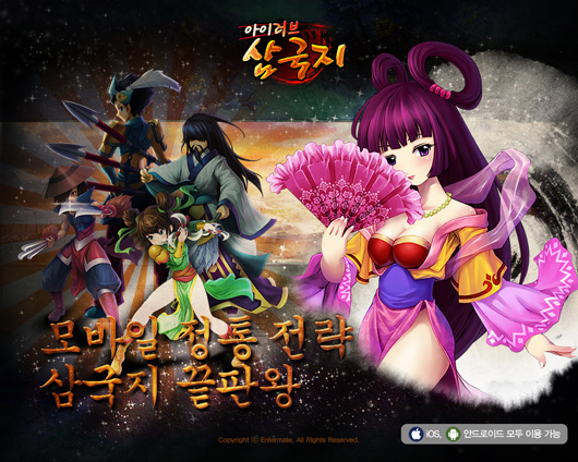 ... '아이러브삼국지'는 엔터메이트가 서비스하는 웹게임 '와룡전설'을 바탕으로 개발된 것으로 역사 속 세 국가 위, 촉, 오는 물론 500명에 달하는 무장, 95종의 병과, 10여 종의 진법 시스템, 화려한 그래픽까지 PC온라인을 그대로 옮겨왔다. 또 특정 시간마다 바뀌는 '