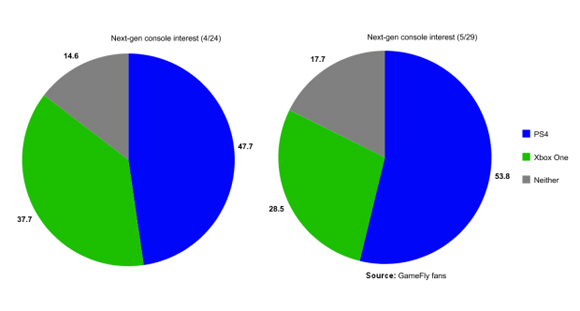 ...게임플라이는 지난 4월 24일과 5월 29일 팬사이트 회원들을 대상으로 차세대 콘솔기기에 대한 관심도를 알아보는 설문조사를 두 차례에 거쳐 진행했다. 해당 설문조사는 지난 21일 X박스원이 최초로 공개된 시기를 사이에 두고 이뤄졌다. 우선 X박스원의 실체가 공개되기 전인 4월 2