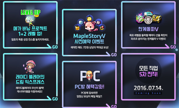 ... 오는 14일로 예정된 여름 대규모 업데이트 '메이플스토리V'는 10년만에 선보이는 5차 전직, 신규 대륙 '아케인 리버', 200레벨 장비, 편의사항 개편 등 대대적인 규모를 예고하며 유저 사이에서 회자되고 있다. 특히 5차 전직은 200레벨에 가능한 것으로, 스킬 시스템인