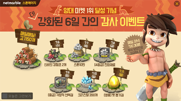 ... 이를 기념해 스페셜 출석, 스페셜 푸시, 스페셜 버프 등 3종 이벤트를 진행하고 다양한 게임 내 아이템을 선물한다. 먼저 ‘스페셜 출석’ 이벤트로 오는 9일까지 출석 횟수에 따라 초월용자 뽑기권, 장비 뽑기권, 룬 뽑기권 등 다양한 아이템을 지급한다. 특히 7일차 보상으로